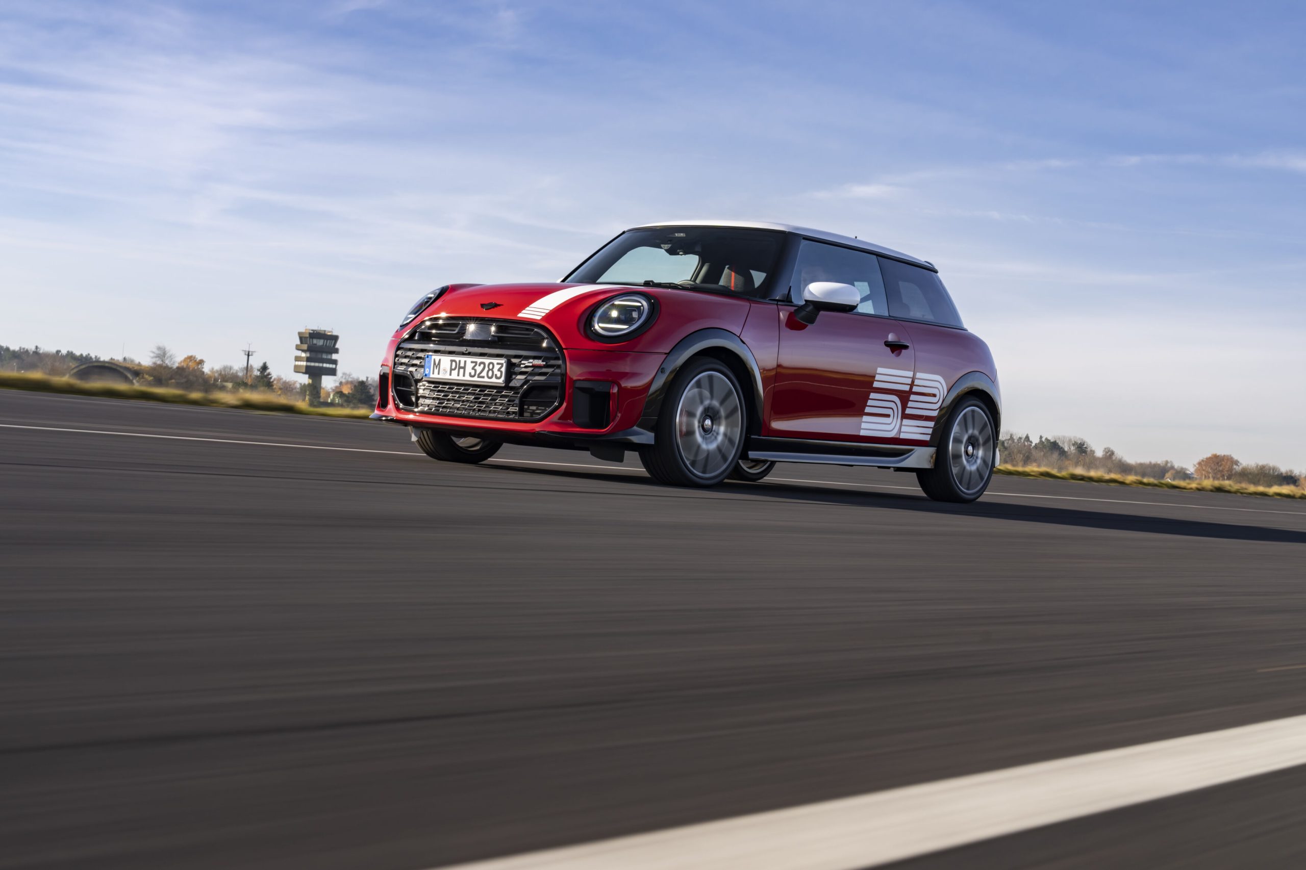 El interior se basa en la paleta de colores tradicional de JCW y el conocido acabado JCW. Con un acabado en un vibrante antracita y rojo, esta combinación crea una elegante fusión que contrasta deportivamente con la pintura exterior del vehículo. Los detalles específicos de la edición se han seleccionado cuidadosamente para crear un efecto general armonioso. El radio de las 6 en punto del volante deportivo y el compartimento portaobjetos en la consola central lucen la inscripción «1965», una sutil pero impactante referencia al rico legado automovilístico de MINI. El número de competición del victorioso Cooper S de 1965 adorna la tapa de la llave de esta edición exclusiva, recordando a diario este éxito histórico.